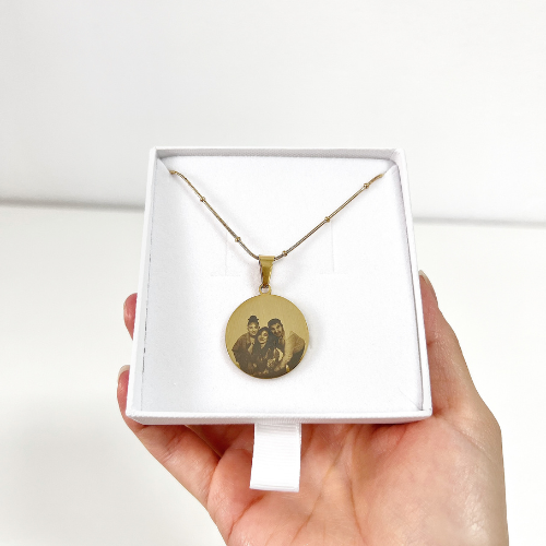 Puedes personalizarlo con una foto, nombre, fecha o frase corta, grabado al detalle y precisión sobre la superficie brillante del colgante.